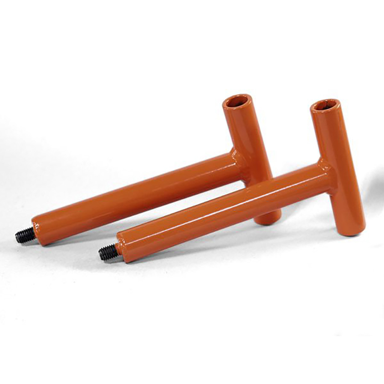Step 1. First, make sure all of the torque converter bolts have been removed. Then thread the T handles into opposing holes on the torque converter. Make sure they are snug but do not over tighten.